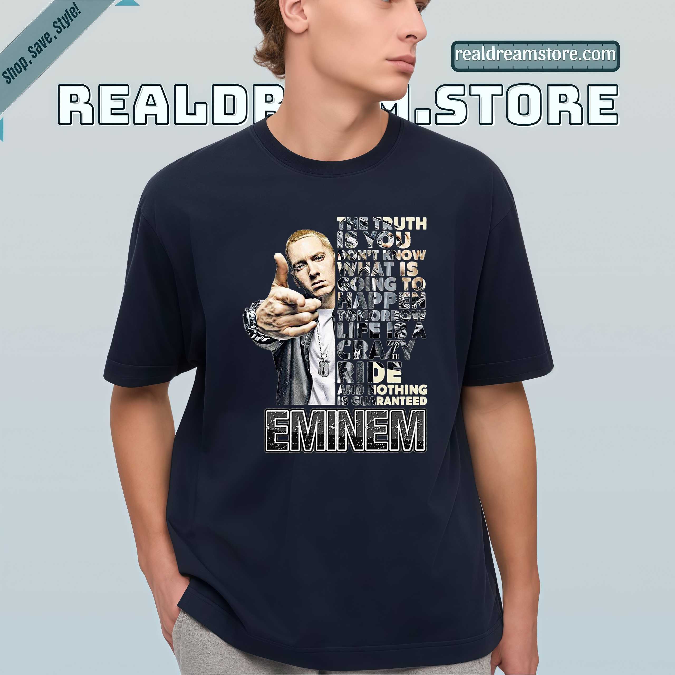 Product Information "Eminem Crazy Ride Quote Tee - Official Eminem Life Bars Dark Color Tshirt"