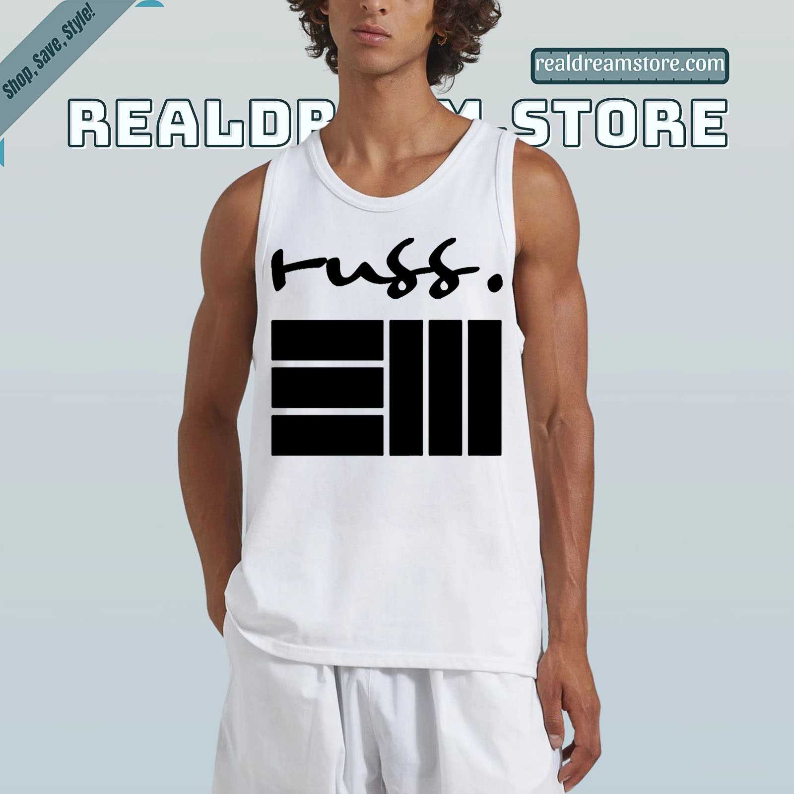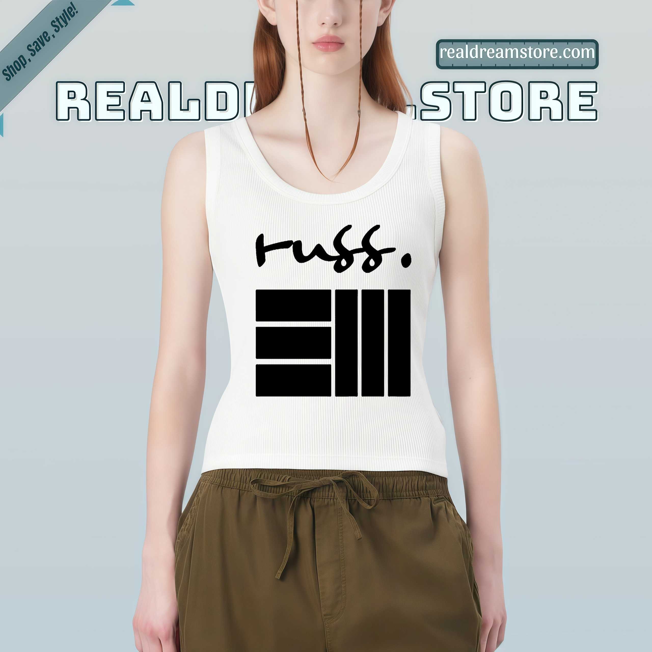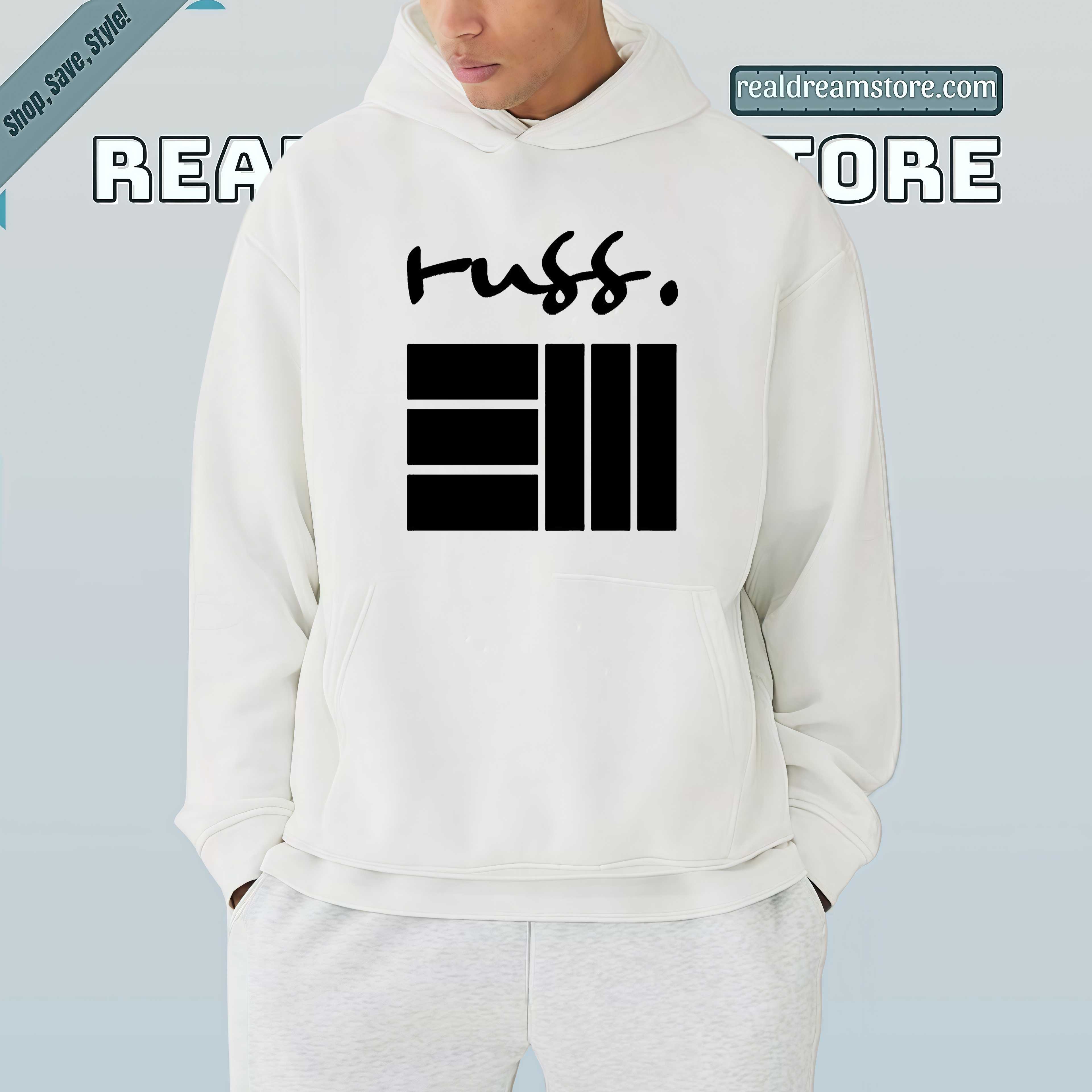 Product Information "Russ Logo Graphic Tee - Signature Handwritten Script & Bars Design Shirt"